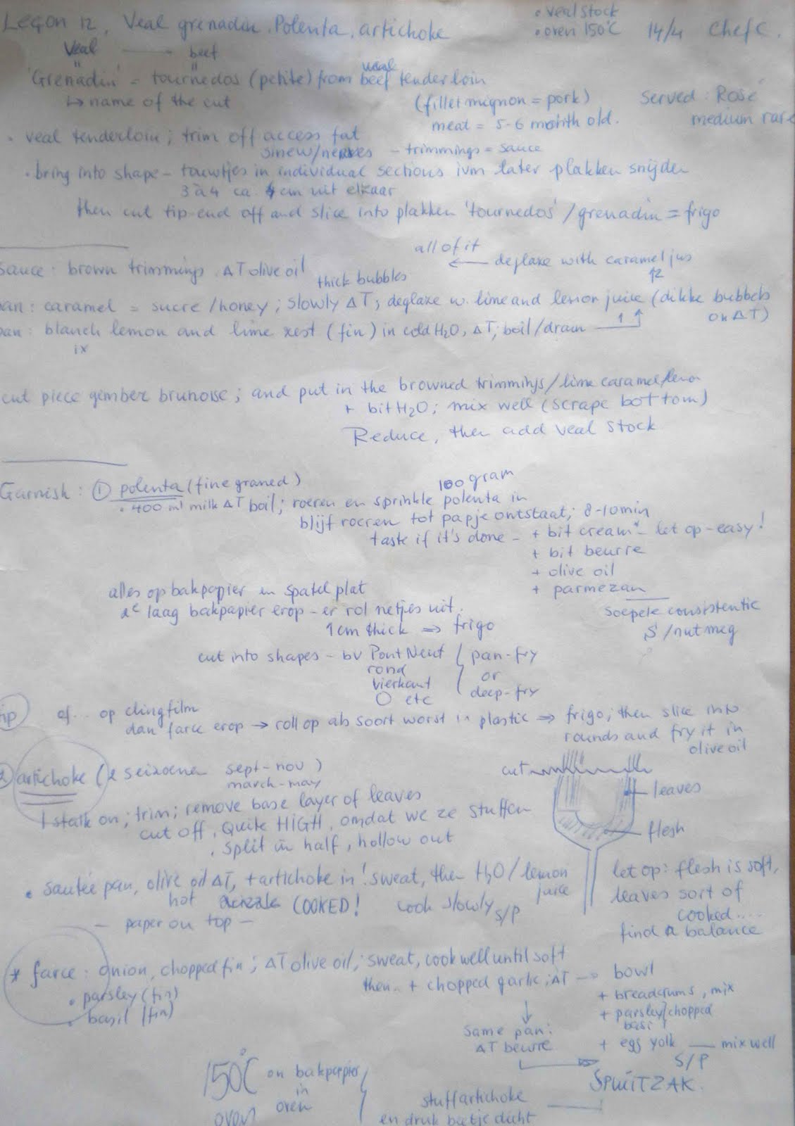 Next week, on Friday, we have lesson 13; A so called 'atelier', where you just get some ingredients and you have to come with 2 identical starters and 2 main courses. It's an exercise for the grand final, where we have to produce 4 plates of each....