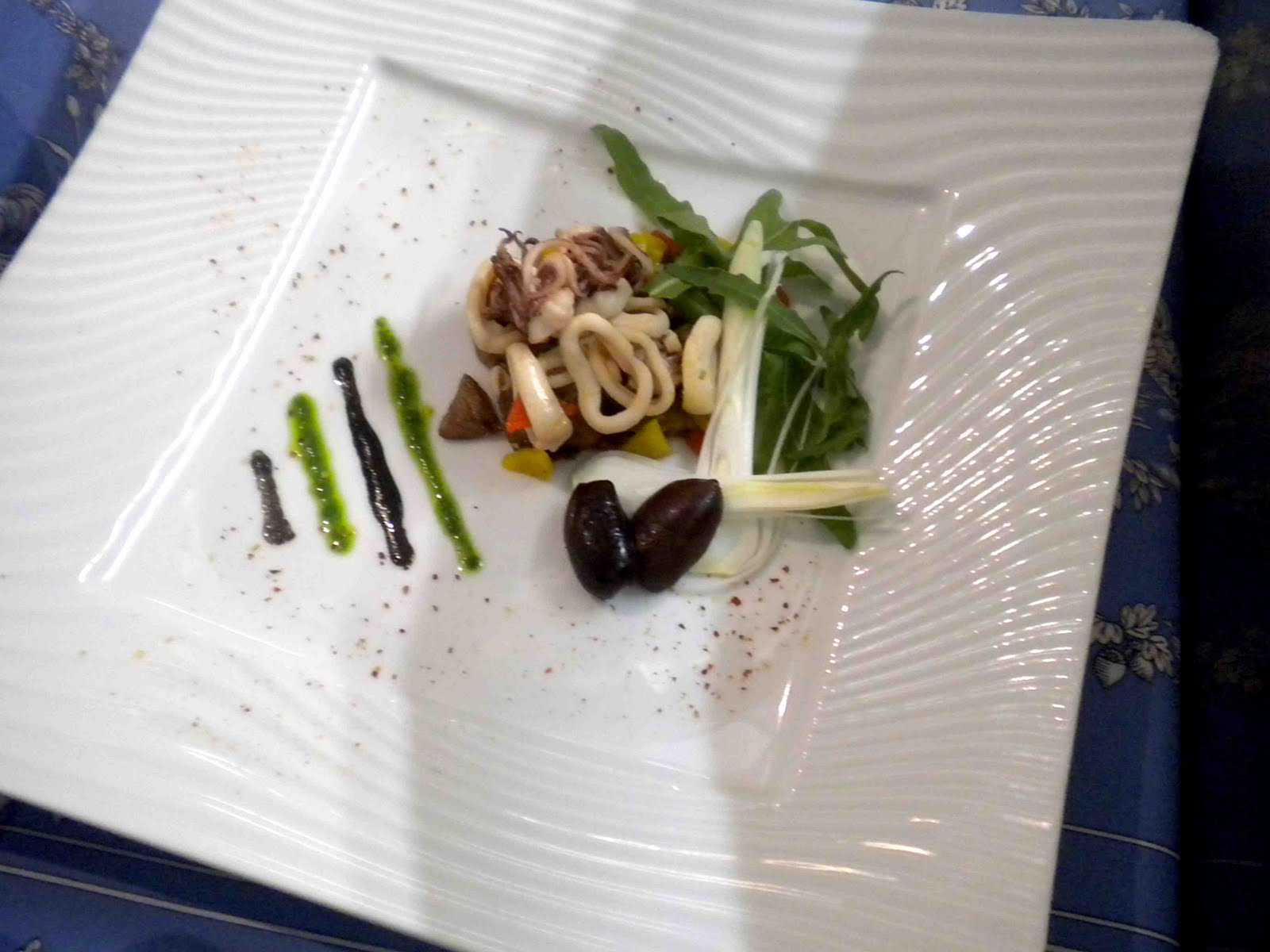 Dessert: bitter chocolate soft-centered cake with arabica sorbet. Very,very nice indeed!