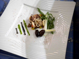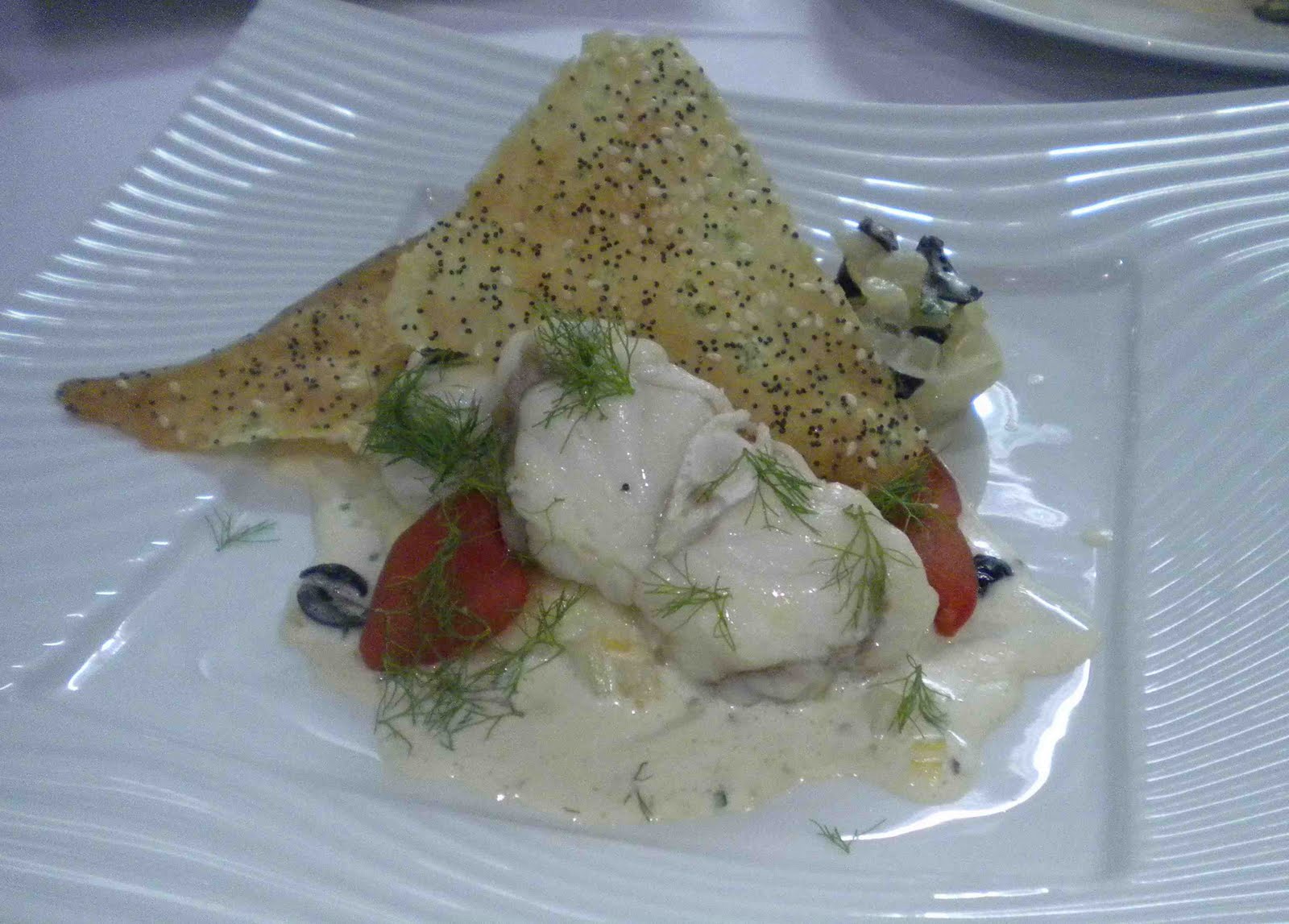 Crisp langoustines with a citrus emulsion, olive oil and wasabi for the starter. Chef Terrien had a creative moment...