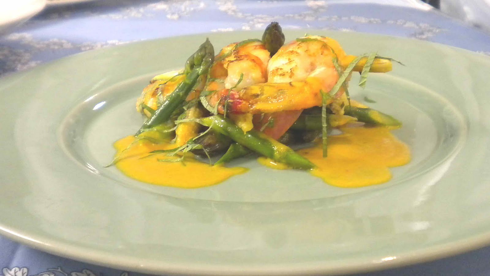starter: Roasted jumbo shrimp on a stick of lemon grass