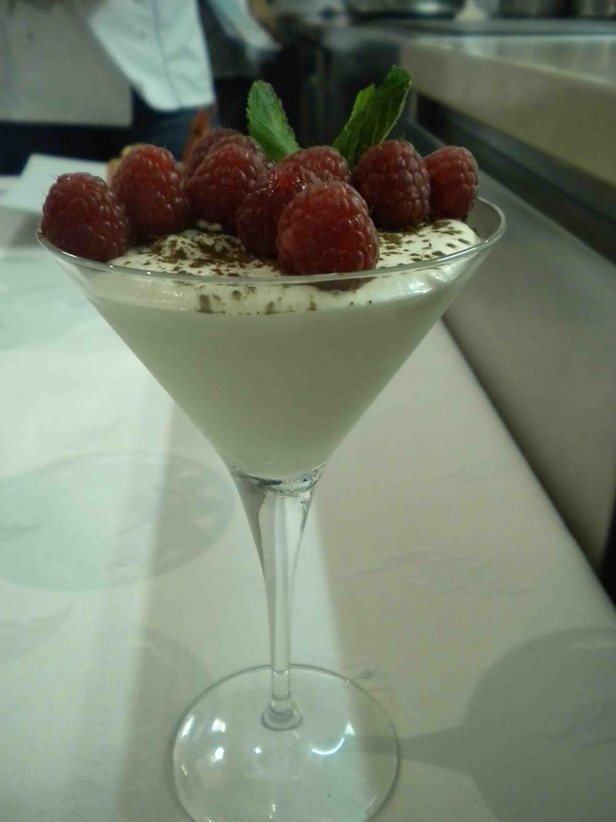 dessert: A light tiramisu-style mousse with sugared raspberries (with lots of mascarpone that is.... light.... not....)