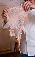 Today, we had one practical, rabbit legs stuffed with minced veal, herbs and breadcrumbs. Chop, chop, chop, cut, trim, cut some more, remove some bones and push the forcemeat inside. And finally, my favourite – NOT - wrap the leg in caul fat.... (pigs stomach). Put in the oven and plate nicely. Served with endive and some slices of polenta. It wasn’t that bad actually.
